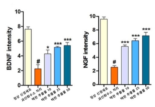 연구팀은 배아 17일차 실험쥐의 대뇌피질에서 분리한 뉴런을 대상으로 택란 추출물의 신경보호 효과를 검증하는 실험연구를 진행했다. 우선 과산화수소를 이용해 대뇌피질의 신경세포 사멸과 염증 반응을 유도한 뒤 택란 추출물을 다양한 농도로 처리했다. 그 결과, 택란 추출물을 처리한 신경세포에서 축삭돌기의 재생이 빠르게 회복했다. 택란 추출물의 농도가 진할수록 축삭돌기의 재생도 활발해졌다.