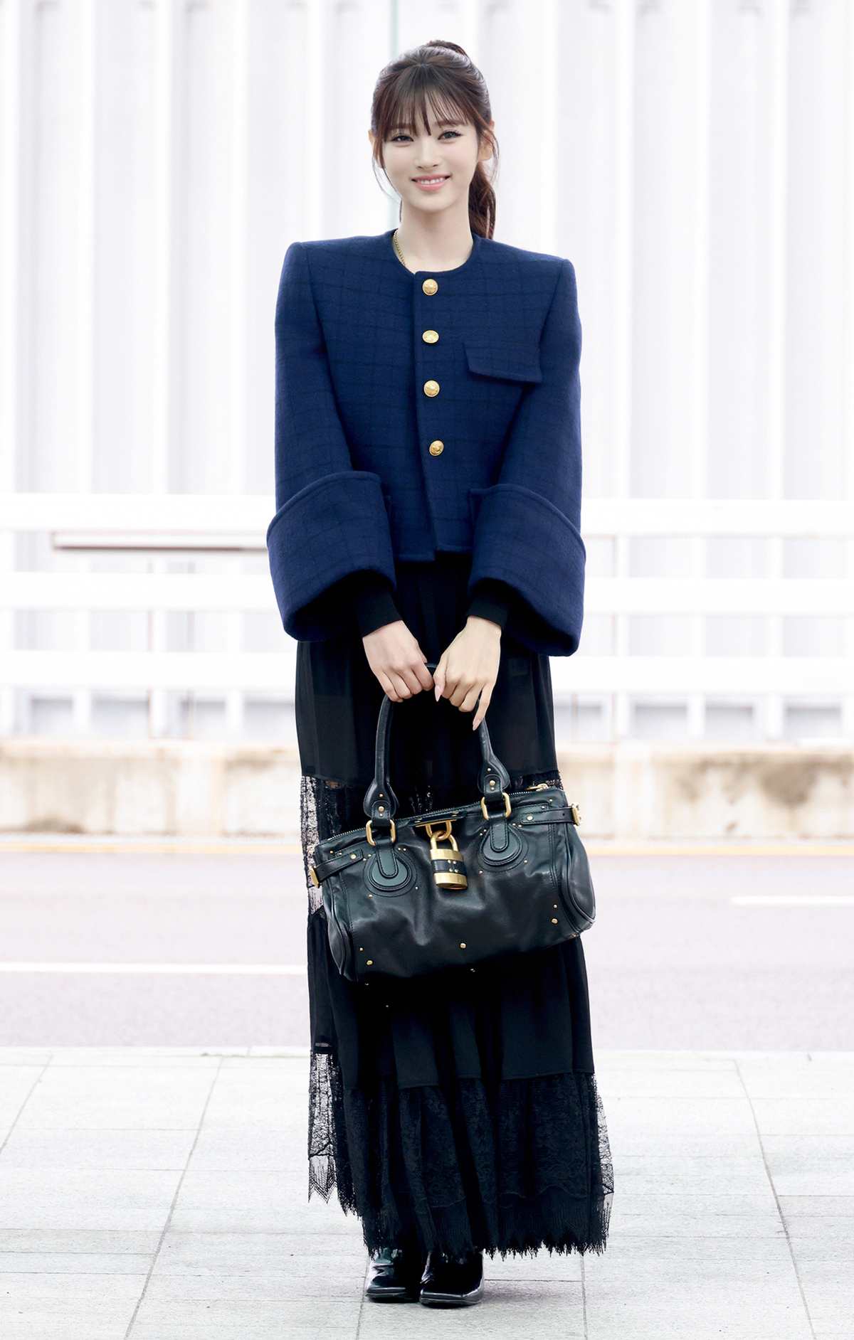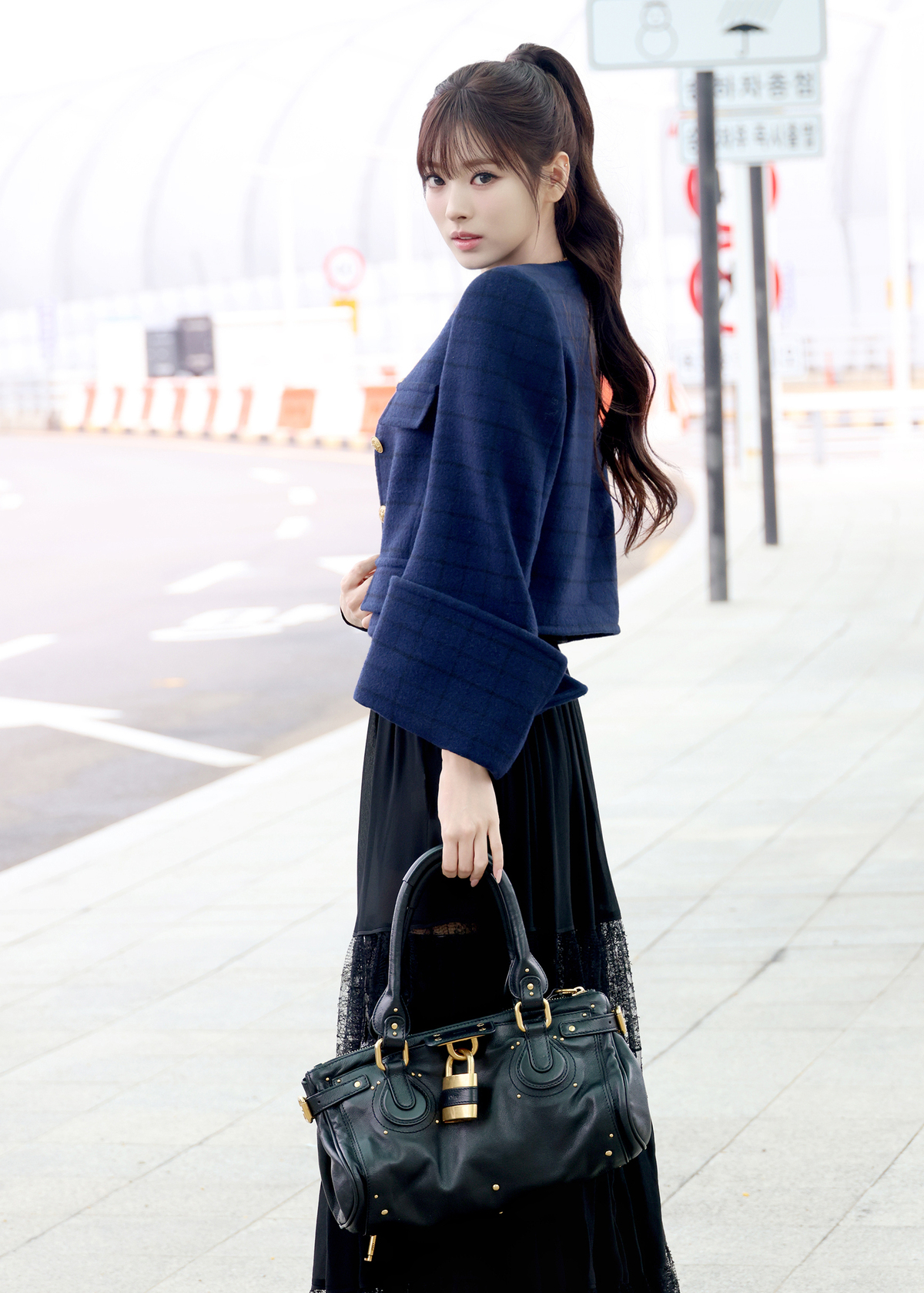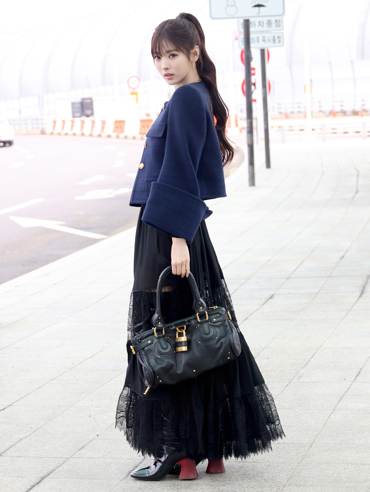 이날 미야오 안나는 인형 같은 비주얼과 독보적인 아우라로 공항을 밝히며 시선을 사로잡았다. 고급스러운 체크 패턴 울 재킷과 페미닌한 실루엣의 레이스 롱 스커트에 태슬 네크리스를 매치해 세련된 무드를 연출하고, 자물쇠 장식이 돋보이는 모던한 블랙 레더 패딩턴 백과 페이턴트 롱 부츠로 감각적인 포인트를 더해 프렌치 시크룩을 완성했다.