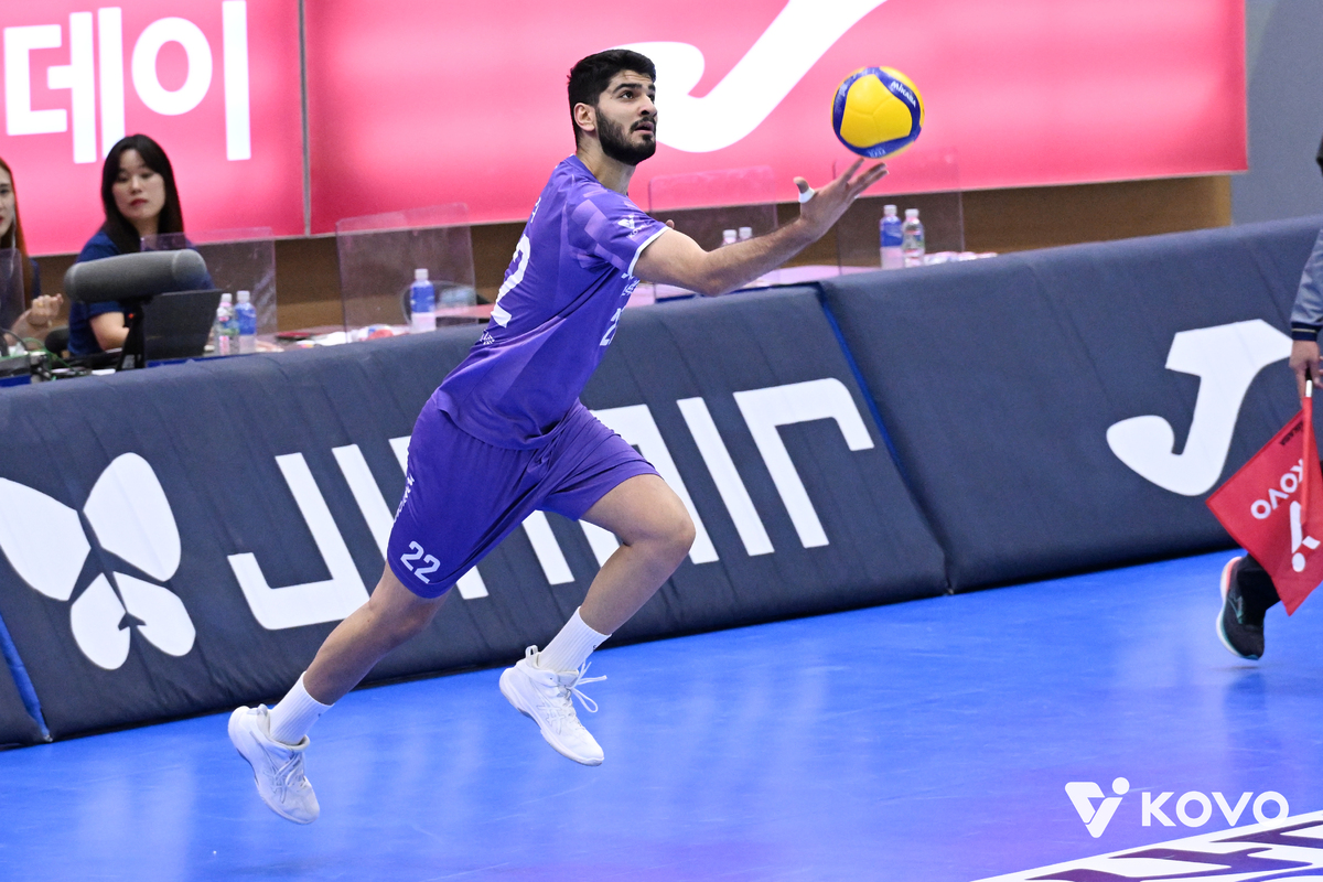 우리카드 알리가 20일 한국전력과의 원정경기에서 서브를 준비하고 있다 사진=KOVO 제공
