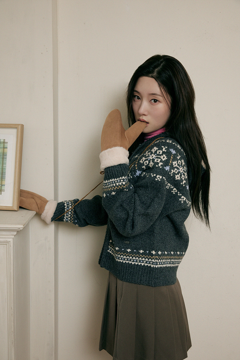 화보 속 정채연은 후드 집업과 스커트 위에 클래식한 코트를 매치해 캐주얼하면서도 시크한 룩을 연출하고, 홀리데이 무드가 느껴지는 노르딕 패턴의 가디건과 플리츠 미니 스커트로 경쾌하고 따뜻함이 돋보이는 룩을 완성했다. 또, 자칫 평범해 보일 수 있는 패딩과 데님 스타일에 니트 보넷으로 귀여운 포인트를 더했다.