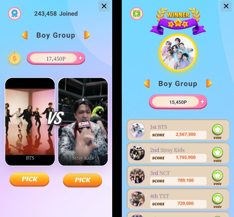 업체에 따르면 ‘케이팝 데몬 헌터스(케데헌)’의 흥행으로 K-POP 열풍이 더욱 거세지는 가운데 시미픽은 이상형 월드컵 방식으로 K-POP 가수들의 뮤직비디오를 1대1로 비교하며 투표하는 방식을 채택했다. 론칭 15일 만에 25만명이 참여하는 등 폭발적인 반응을 얻고 있다.