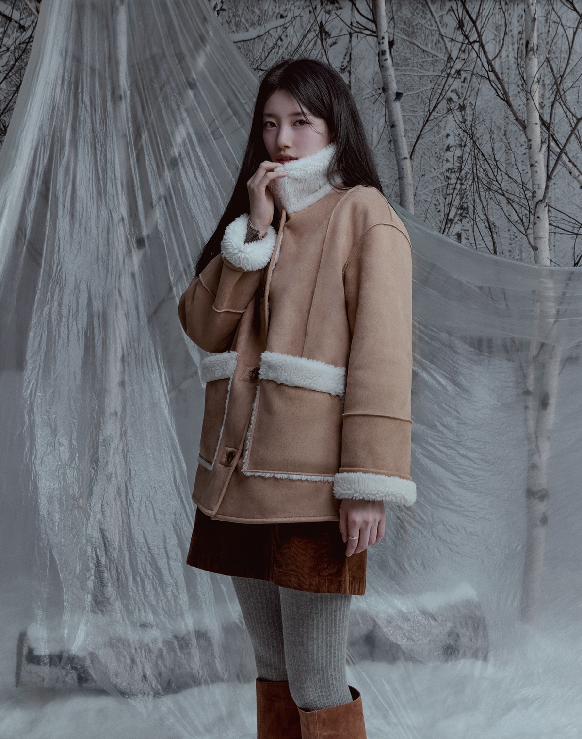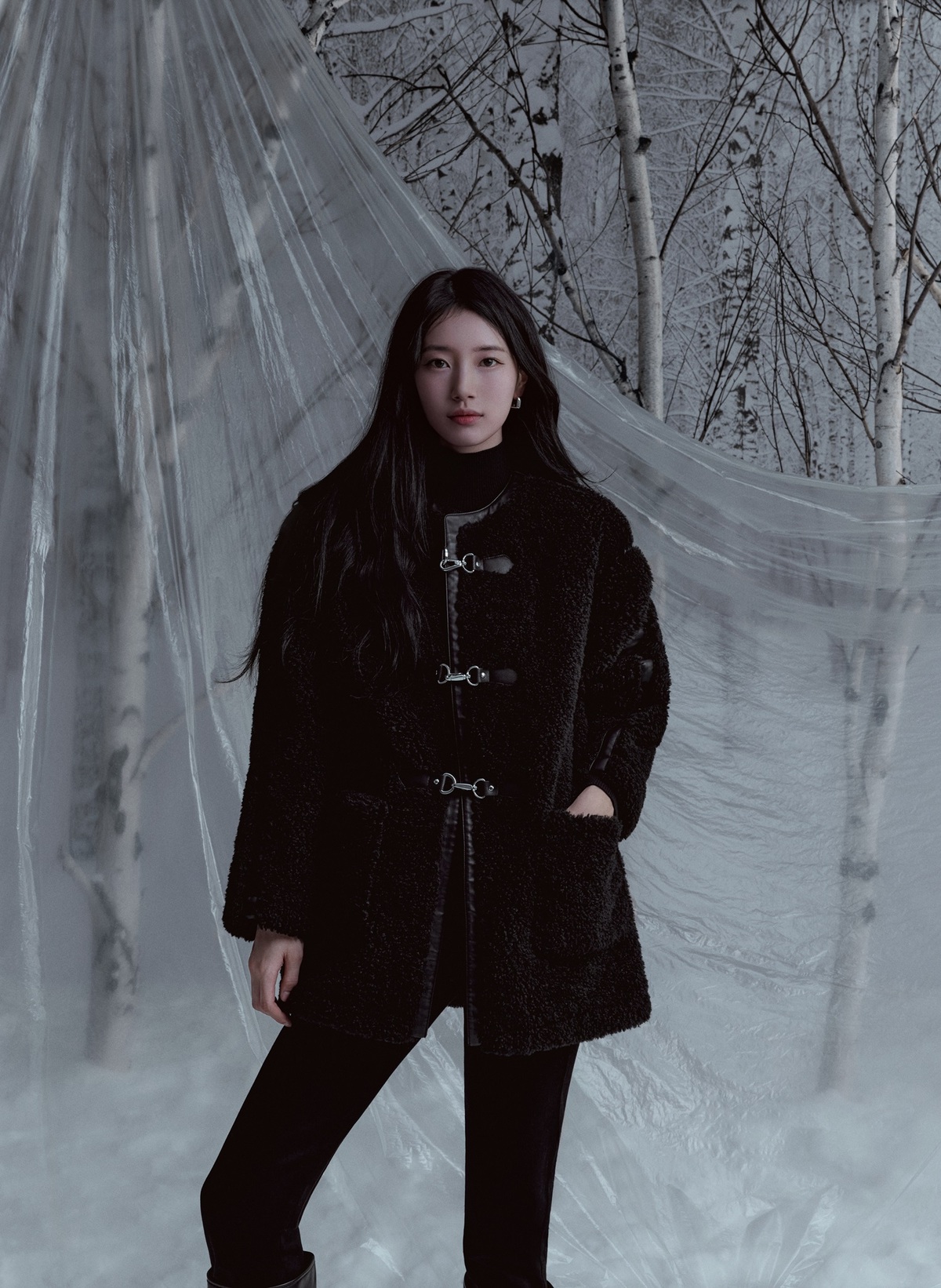 이번 화보는 몽환적인 겨울 숲을 배경으로, 고요하고 세련된 무드 속에서 ‘겨울 여신’으로 변신한 수지의 다채로운 매력을 담아냈다. 설원 속 수지의 모습은 한 편의 겨울 영화 속 장면을 연상시킨다.