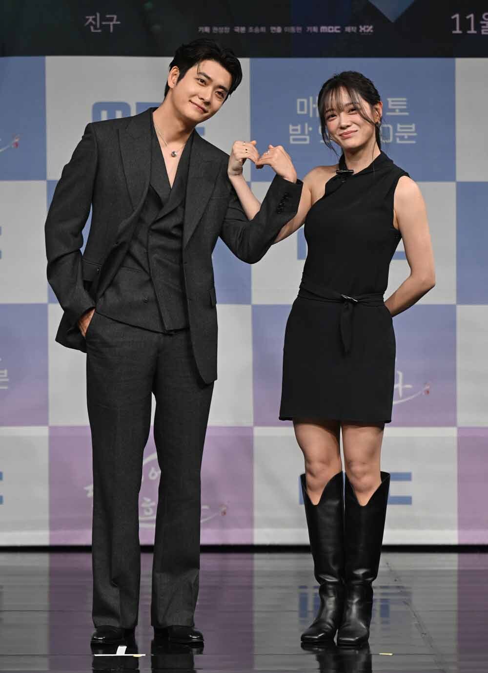 배우 강태오(왼쪽)과 김세정이 30일 서울 마포구 MBC 골든마우스홀에서 열린 MBC 금토드라마 '이강에는 달이 흐른다' 제작발표회에서 포즈를 취하고 있다.