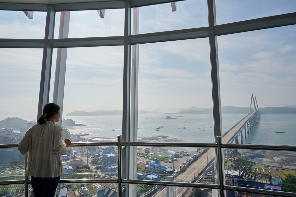 높이 51.26m, 22층 규모의 통유리 전망대에서는 영목항과 장고도, 고대도, 서해의 갯벌과 섬들이 360도로 펼쳐진다. 해 질 무렵 이곳에서 보는 낙조는 ‘태안 제2의 꽃지’로 불릴 만큼 아름답다. 밤에는 조명이 켜져 야경 산책을 즐기기에도 좋으며, 1층 특산품 판매장과 카페, 2층 테라스가 여행객의 쉼을 더한다.
