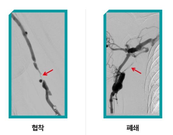 만약 투석혈관이 막히거나 좁아져 간다면 인터벤션 치료인 투석혈관 재개통술 등을 통해 혈관을 개통해 다시 사용할 수 있다.
