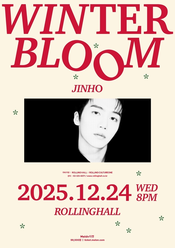 진호는 오는 12월 24일 오후 8시 서울 홍대 롤링홀에서 단독 콘서트 'Winter Bloom'을 개최한다. 이번 공연은 올 한 해 응원과 사랑을 보내온 팬들과 특별한 크리스마스이브의 추억을 쌓고 2025년을 마무리하고자 하는 진호의 마음이 담긴 공연이다.