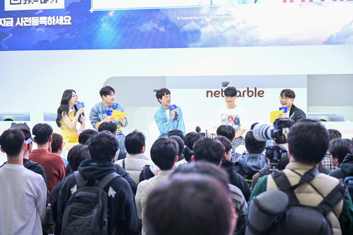 넷마블은 15일 부산 벡스코 제1전시장 내에 마련된 부스에서 나혼렙: 카르마, 몬길: 스타 다이브의 무대 행사를 진행했다.
