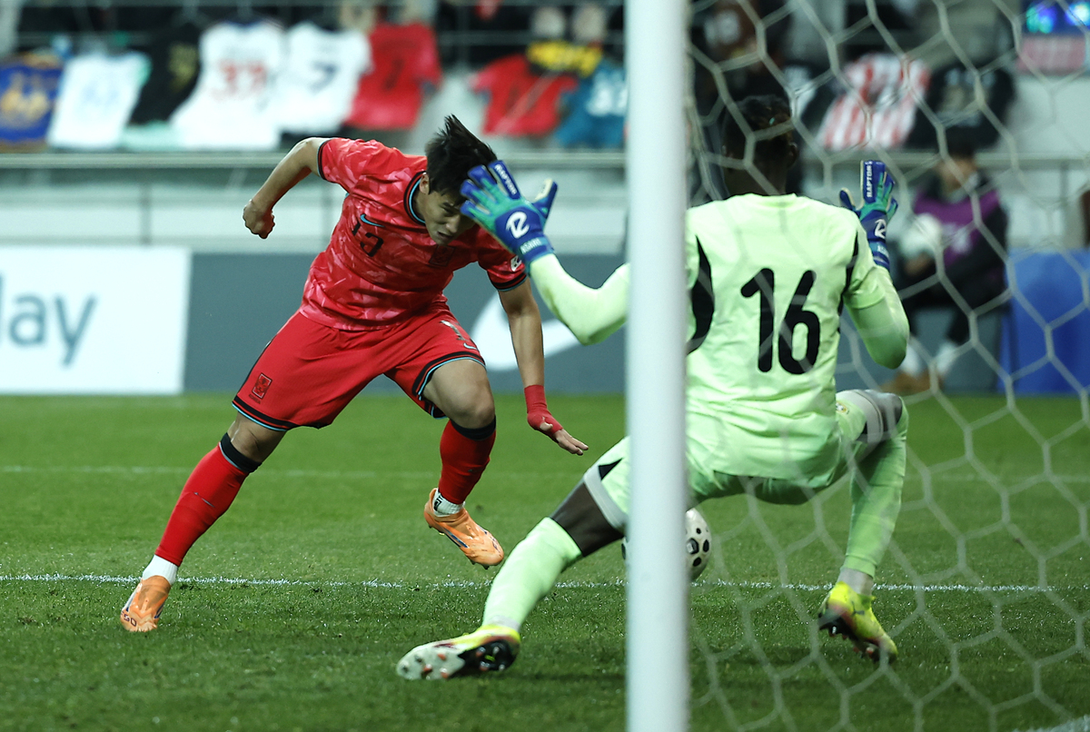 답답한 흐름을 이태석이 깼다. 한국은 전반 슈팅 1개에 그치며 답답한 경기력을 이어갔다. 균열을 이태석이 무너뜨렸다. 홍 감독은 후반 시작과 함께 카스트로프, 권혁규를 빼고 김진규(전북 현대), 서민우(강원FC)를 투입했다. 이어 후반 17분 오현규, 손흥민 대신 조규성(미트윌란), 황희찬(울버햄튼)이 나섰다.