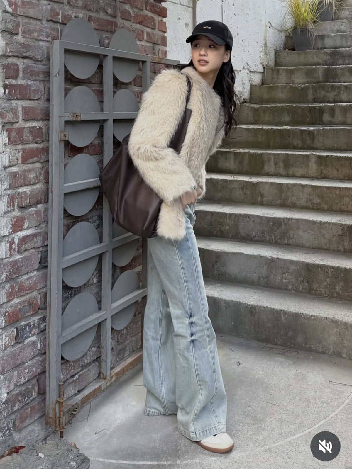 사진 속 손연재는 아이보리색 퍼 재킷에 청바지를 입고 여러 포즈를 취했다.