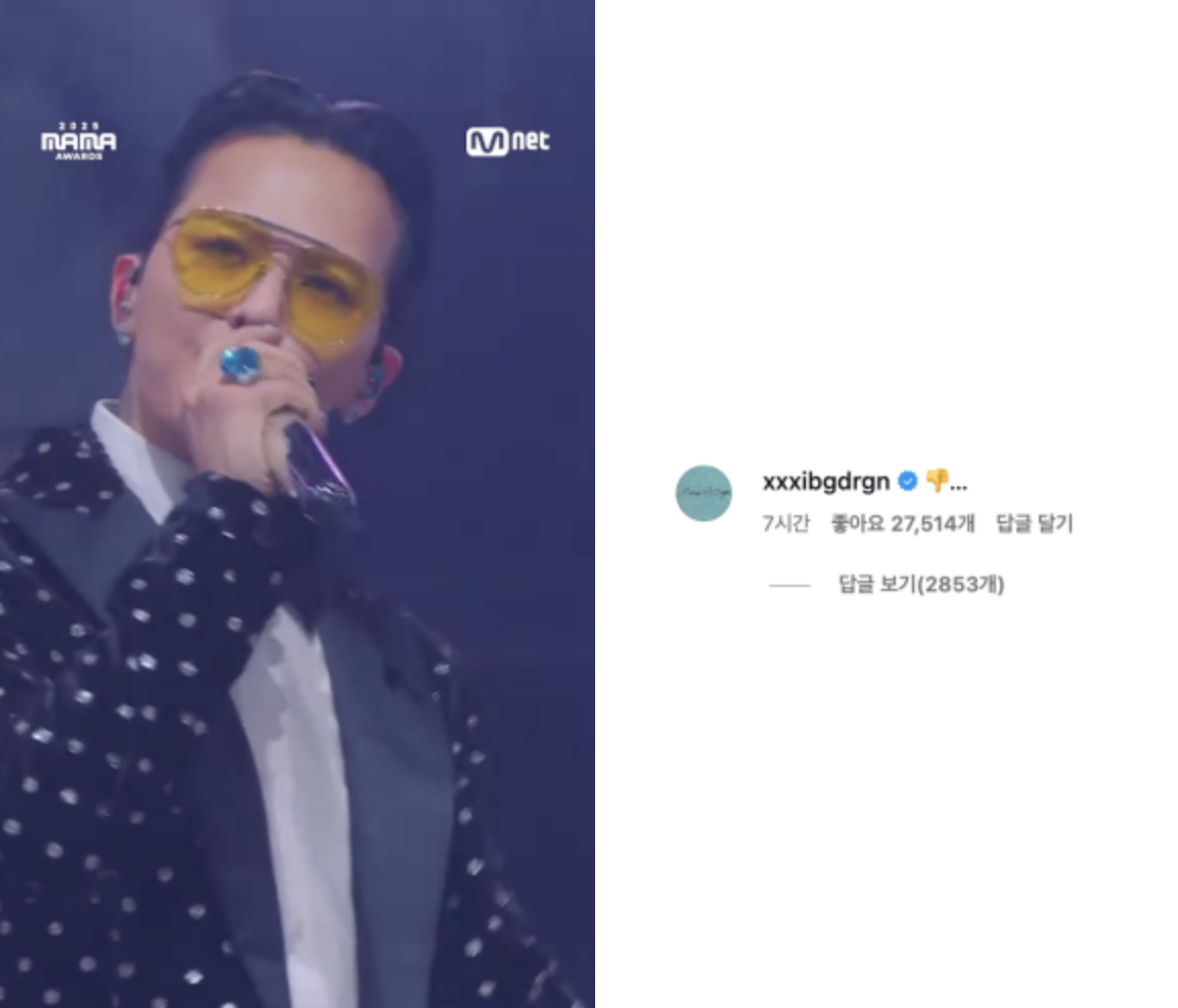 지드래곤은 2006년 빅뱅으로 데뷔해 올해로 20년 차 가수다. 시대를 풍미한 빅뱅의 활약상과 더불어 솔로 활동으로도 정점을 찍었다. 그런 그가 또 한 번 실망스러운 무대를 보여줬다. ‘글로벌 대표 K-팝 시상식’이라 자부하는 ‘마마 어워즈’에서다.