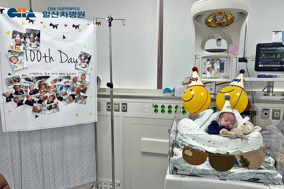 일산차병원에서 체중 570g으로 태어난 남자 아기가 100일간의 집중 치료 끝에 2.22kg으로 회복, 생후 100일 잔치를 열었다.